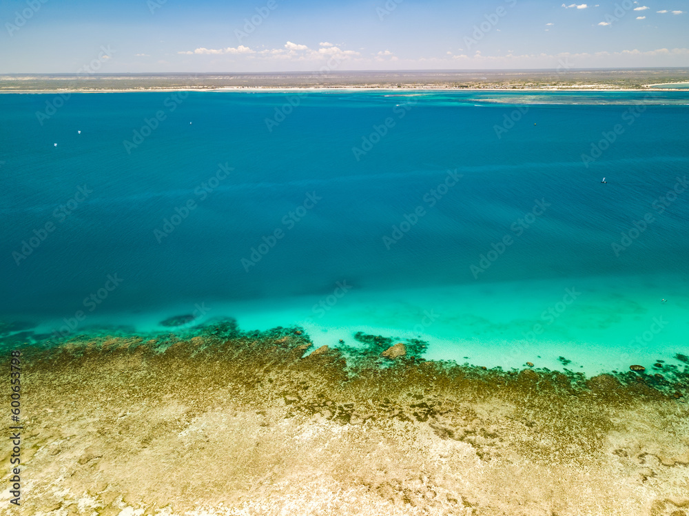 Bird's eye view of the turquoise waters surrounding the island of Nosy Ve in Madagascar.