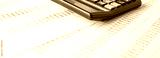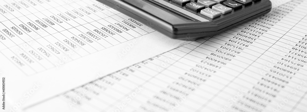 Calculator on financial statement and balance sheeet on desk of auditor. Concept of accounting and audit business.