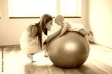 Stability ball exercises for neurodevelopment of baby. Low muscle ball. Tummy time.