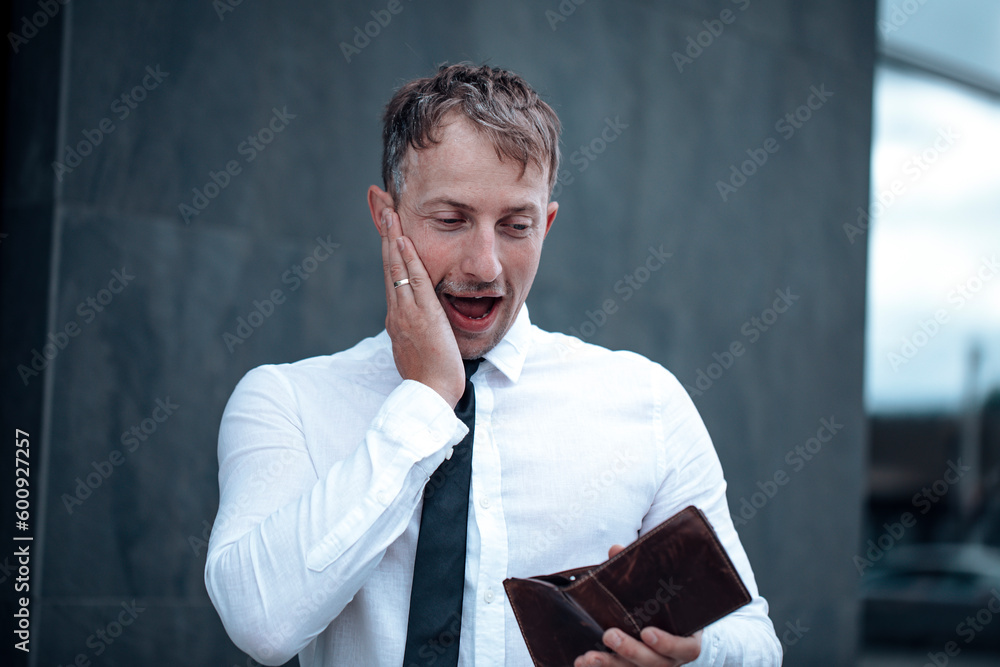 Empty wallet in the hands of a man. Cost reduction cost control concept