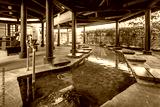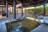 Beppu, Japan - Nov 25 2022: Ashiyu Foot Bath is just a few steps down the street from the steam cooking center Jigoku Mushi Kobo in Kanawa district in Beppu, Oita. The bath is free to use.