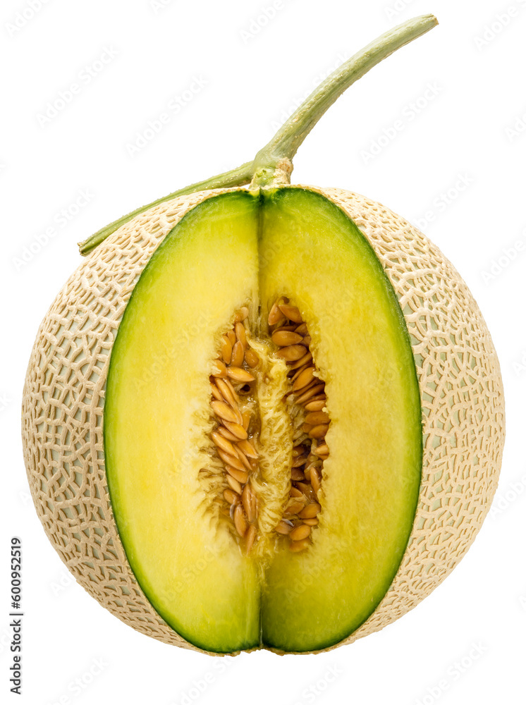 Shizuoka Crown Melon or cantaloupe on white background,Yellow Crown Musk Melon on white background PNG File..
