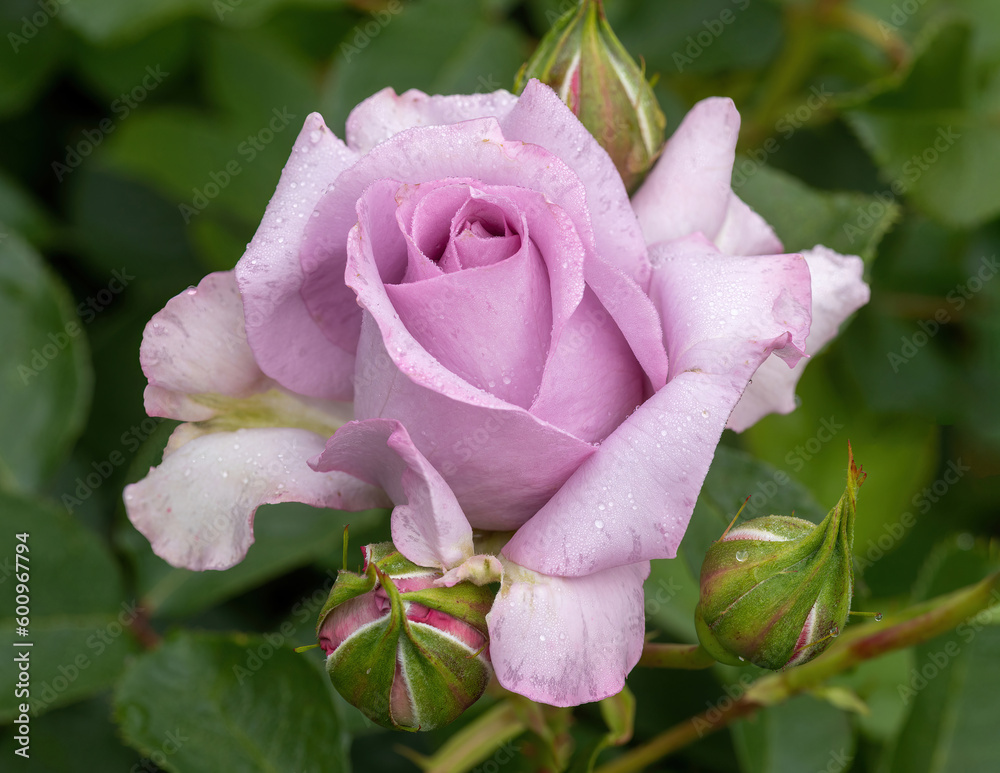 'Love Song' Floribunda Rose with Morning Dew in Bloom