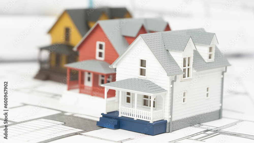 house model on construction drawings, design concept and design