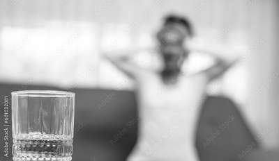 Depressed sad young addicted woman feeling bad, drinking whiskey alone in a bar, stressed frustrated lonely alcoholic woman suffers from alcohol addiction, has problems, alcoholism concept