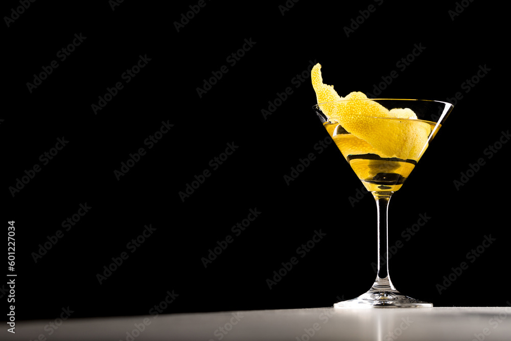 Martini Cocktail boozy gin, Italian vermouth, orange bitters and a twist of lemon peel