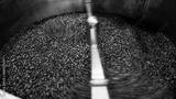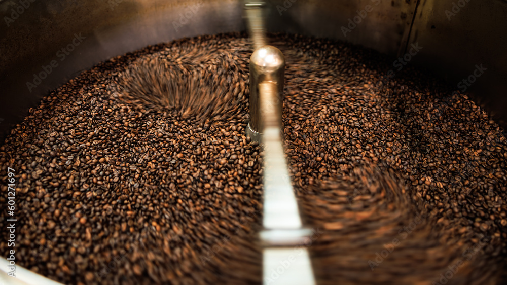 fresh coffee beans roasted spinning cover professional machine close up to soft focus slow shutter speed because want to make motion blur of coffee beans detail concept,
