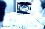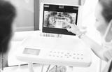 Dentist explaining x ray picture to patient