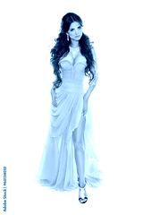 Full-length portrait of fashion woman in romantic pink dress iso