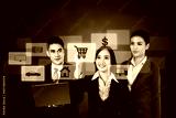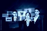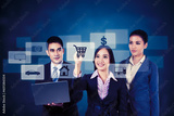 Businessman and businesswoman shopping online on virtual panel