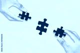 hold in hand a jigsaw puzzle. Business solutions, success and strategy