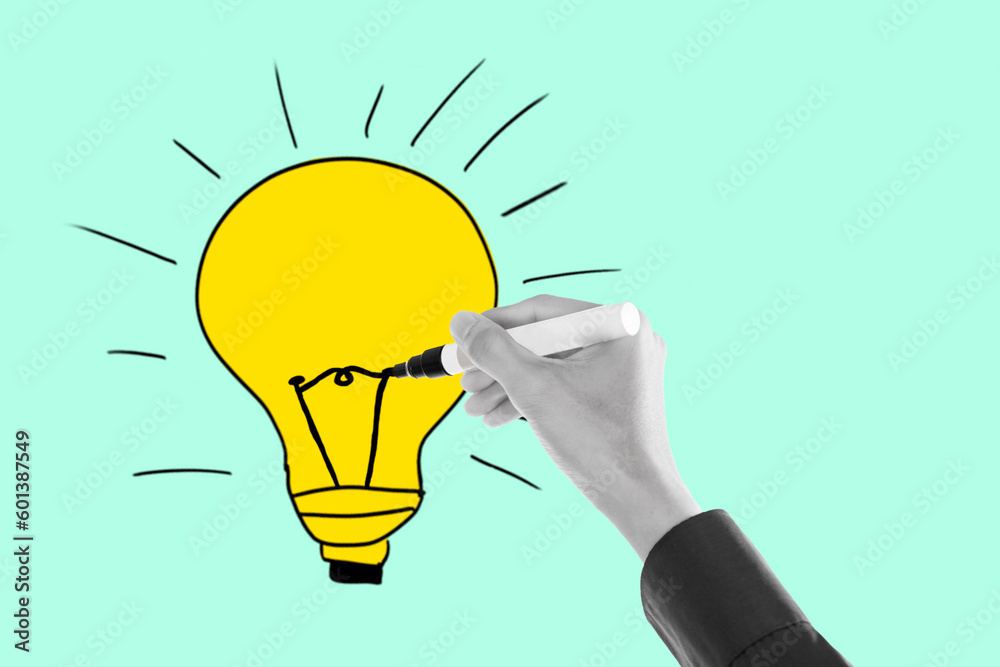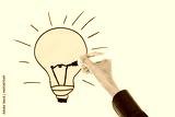 Hand holding pencil drawing light bulb