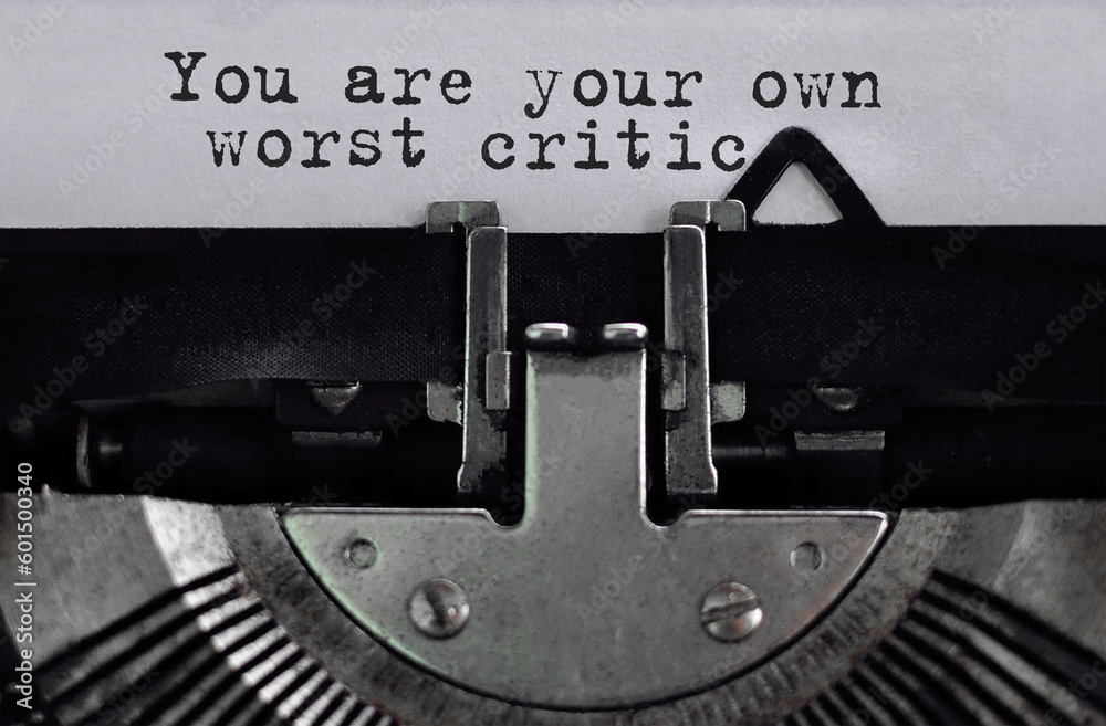 Text You are your own worst critic typed on retro typewriter