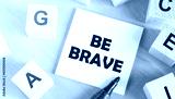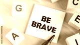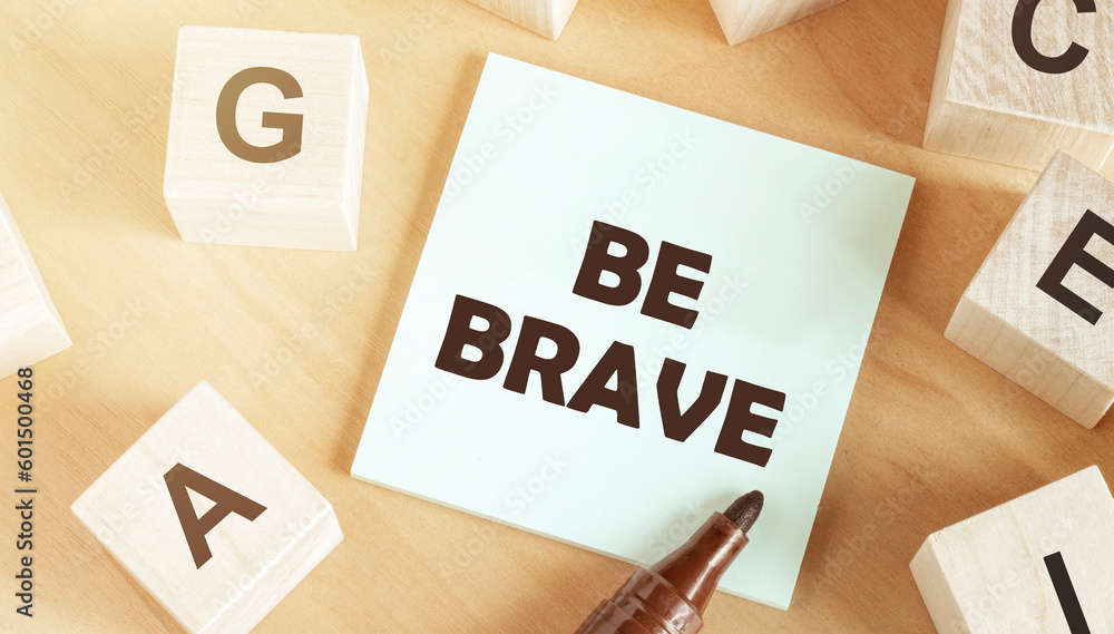 Sticker with text Be brave in the middle of wooden cubes with letters