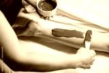 Qualified cosmetologist performing algae body wrap treatment on spa client