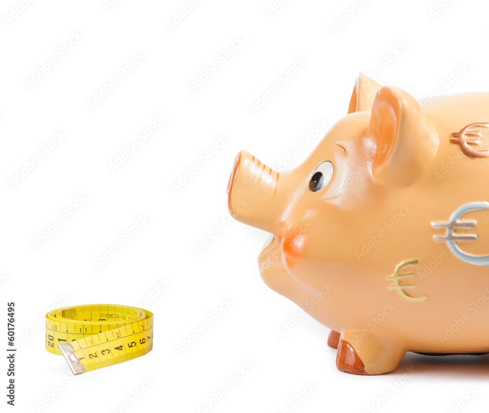 piggy bank and measure tape, concept for save money