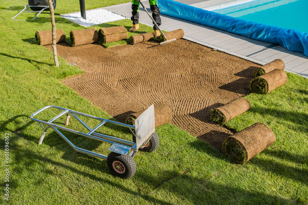 Fresh Natural Grass Turfs Replacement in a Backyard Garden