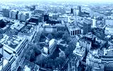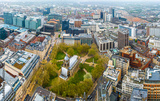 Aerial view of Birmingham, a major city in England’s West Midlands region, with multiple Industrial Revolution-era landmarks