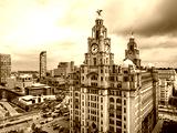 Aerial view of Liverpool waterfront ready for Europvision song contest 2023, England