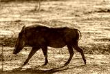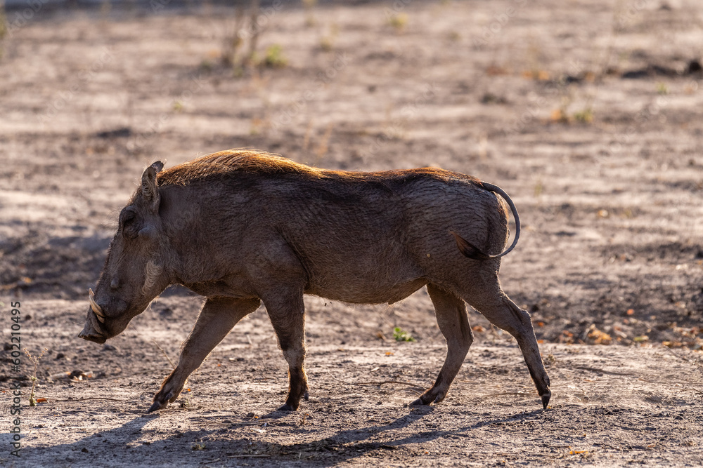 Closeup of a Common Warthog, Phacochoerus africanus, roaming around Chobe National Park, Botswana.