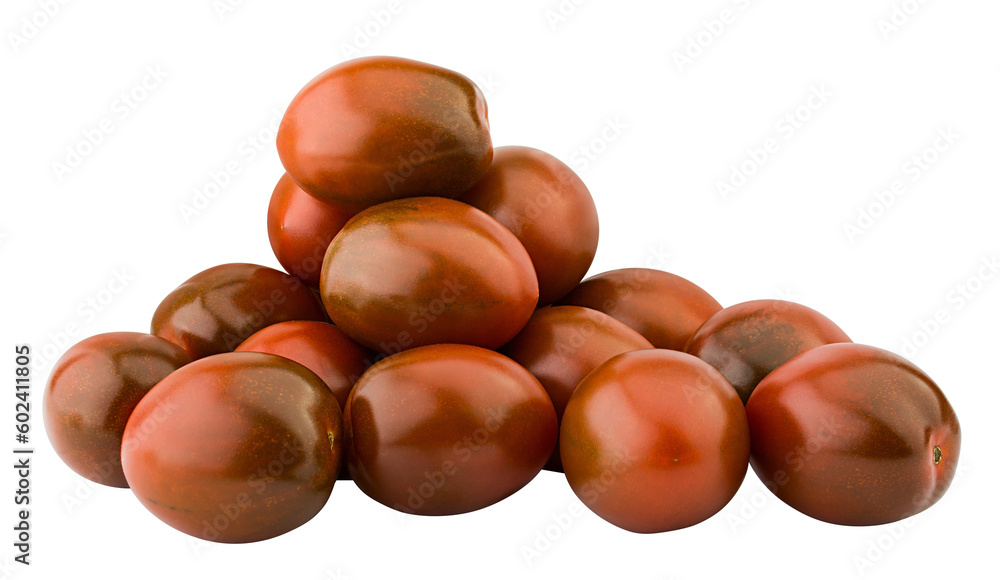 kumato black tomato, cherry, isolated on white background, full depth of field