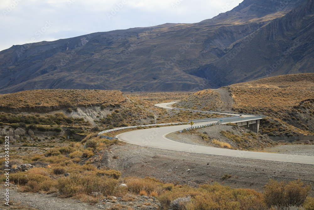 Landscape of the Argentine Patagonia with mountains, rivers and desert