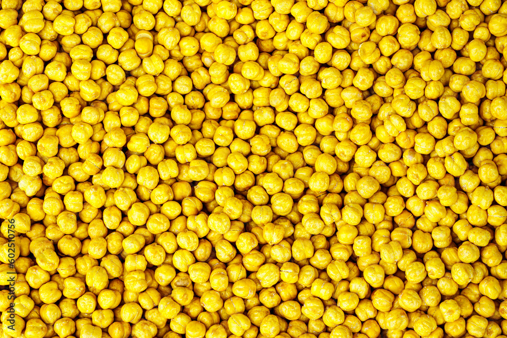 Texture of a pile of roasted peas. Healthy plant vegan food.