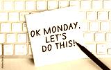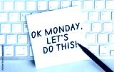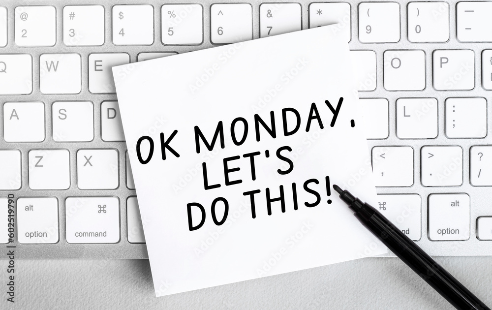 White paper with text Ok monday lets do this lying on the keyboard