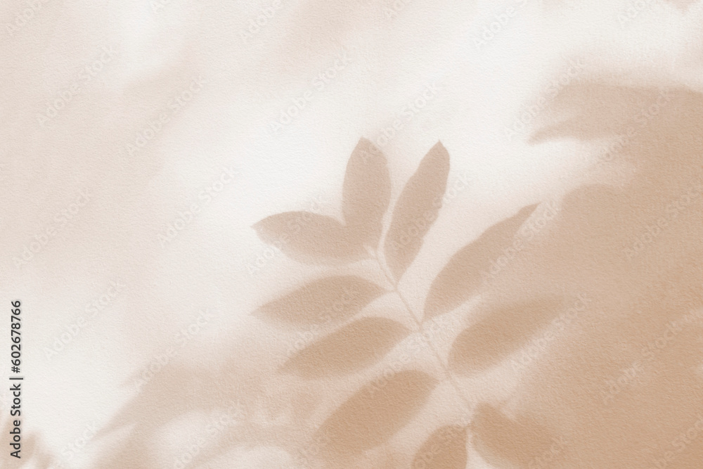 Leaf shadow and light on wall beige background. Nature tropical leaves plant and tree branch shade with sunlight on wall texture for background wallpaper and design, shadow overlay effect