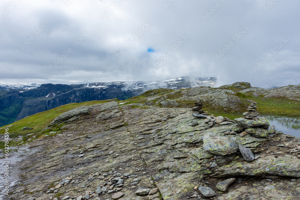 Mountain trail to hike to Trolltunga scenic spot, Norway