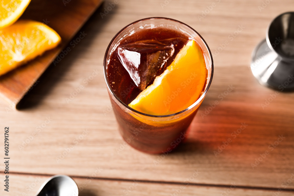 Homemade Americano cocktail refreshment bitter, sweet vermouth and soda water