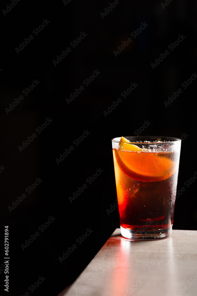 Homemade Americano cocktail refreshment bitter, sweet vermouth and soda water