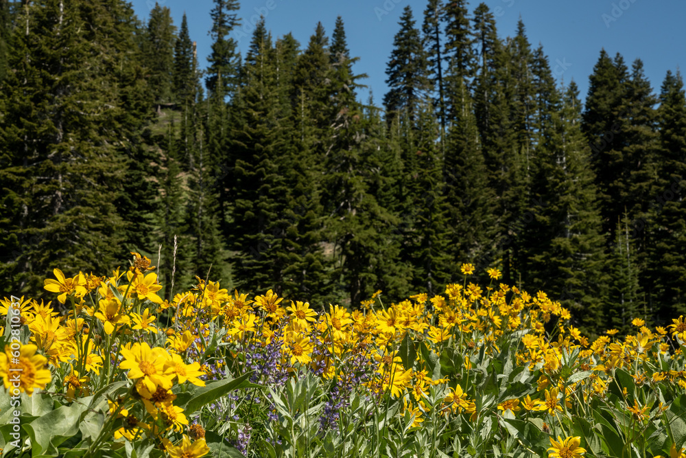 Sun Flowers and Pines Soak Up The Warm Summer Sun