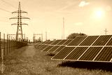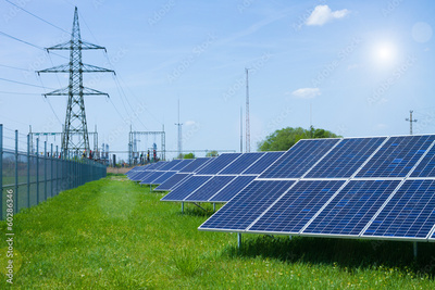 solar panel against high voltage tower
