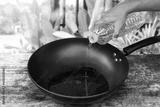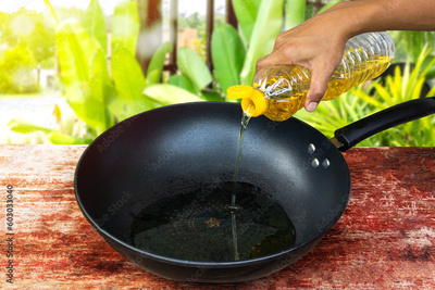 Pour the vegetable oil into the pan for cooking.