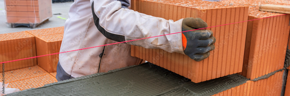 bricklayer working at new built home