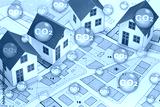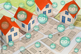 Carbon Footprint in building - activity and construction industry - Carbon Neutral concept with home model and imaginary city map