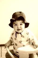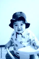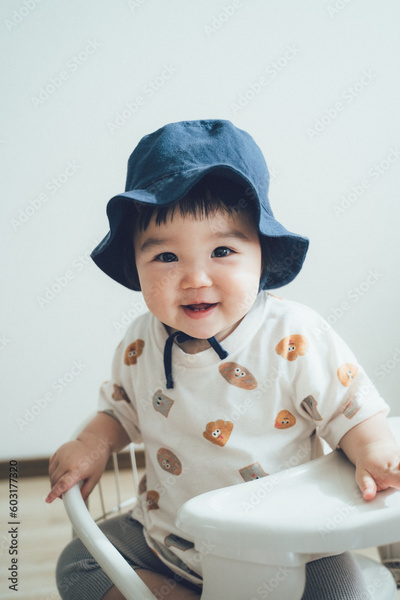 帽子を被る赤ちゃん