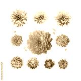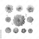 Various pink blooms and petals of asters, dahlias and chrysanthemums. Isolated