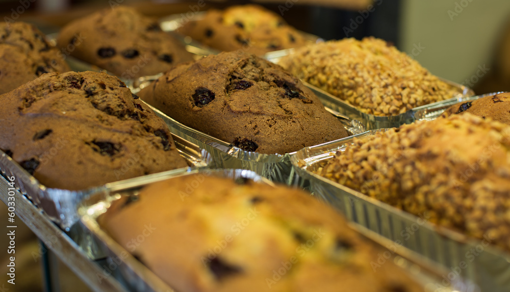 baked bread out of the oven in a bakery