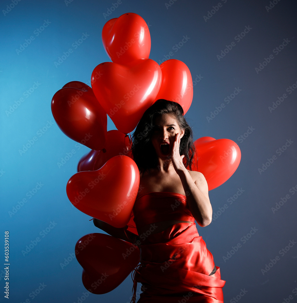 Happy woman giving gift. Valentine day