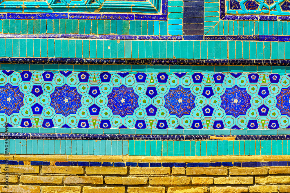 Geometric traditional Islamic ornament. Fragment of a ceramic mosaic.