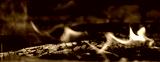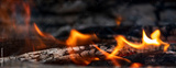 Campfire for cooking in the forest. Burning fire. The fire burns in the forest. Burning fire texture. Burning dry branches. Tourist fire in the forest. Texture of burning branches.