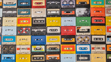 Collection Old retro music cassette placed in rows