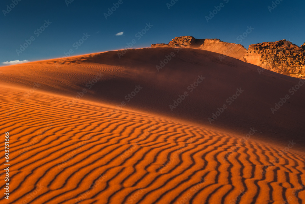 Amazing and spectacular landscapes of Wadi Rum desert in Jordan. Dunes, rocks are all Beautiful weather gives the climate to this place.
