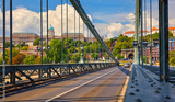 Chain bridge in Budapest, Hungary. View at Royal castle at Buda district over Danube river. Summer budapest evening urban landscape with blue sky and clouds