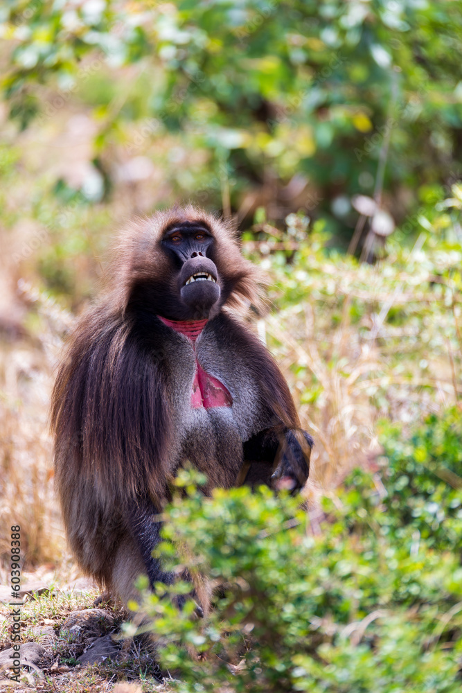 Alpha male of Gelada (Theropithecus gelada), sometimes called the bleeding-heart monkey or the gelada baboon. Debre Libanos, Simien Mountains, Africa Ethiopia wildlife