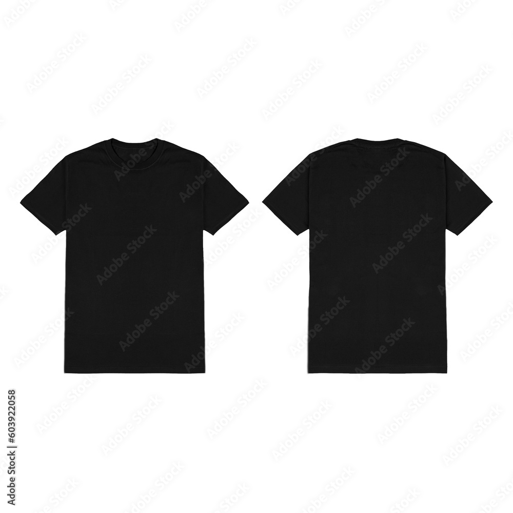 Blank Black T-Shirt Mock-Up on White Background, Front and Back View