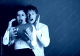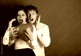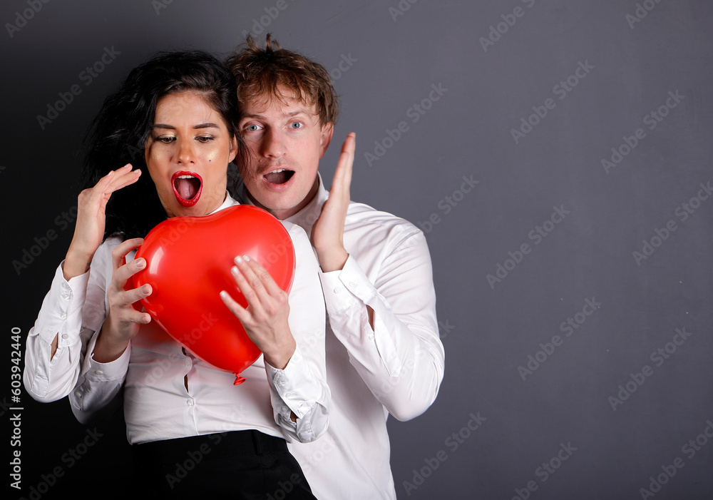 Valentine's Day. A couple give a heart for Valentine's Day in the room.