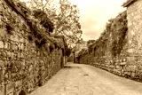 The colorful medieval houses and alleys of San Quirico d'Orcia in a sunny spring day